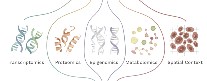 The use of multiomics technologies and analysis for research continues to expand in academia and across industry. Multiomics assays measure multiple sources of biological information from a single sample. In the single-cell context, examples include CITE-seq (RNA gene expression and antibody-based protein expression), 10x Multiome (transcriptomics with chromatin accessibility) and spatial transcriptomics approaches (cellular or subcellular locations along with gene expression). Multiomics analysis aims to extract meaning from multiple modalities, either from a multiomics technology or by combining data from separate assays.